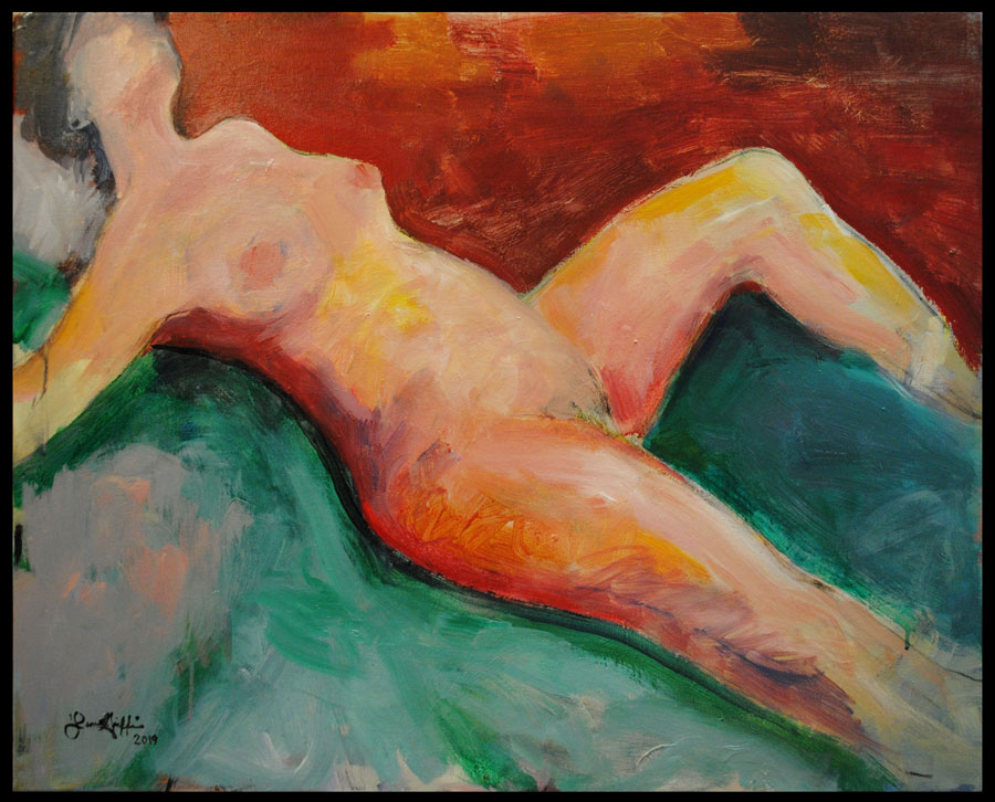 Figure On Red And Green • Acrylic on canvas, 24x30 • $600
